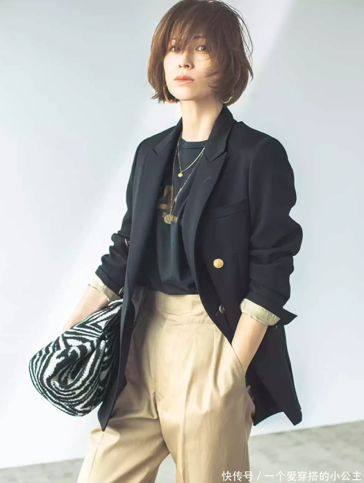 在春夏比较炎热的季节,看惯了花花绿绿的穿搭,其实他们的内心都会更加对清新自在的盐系风穿搭情有独钟一件克莱因蓝的短款衬衫外套配上宽松卡其西装裤,将女性曲线隐藏于松弛廓形下,一股潇洒惬意的少年风范入眼入心,内搭字母T恤增加休闲感,是遐想中日系文艺纯爱片中女主角的样子了▼。