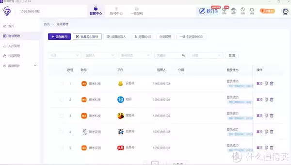 在加进帐号下面,能单个登入,也能引入Excel展开批量操作方式,假如是FTP,网络平台最高全力支持加进5个帐号,虽然不多,但是对于普通人已经足够采用,已经能能给他们节约许多天数了!另外他们还能原则上对帐号展开增设营运人,创建各组,删除帐号等操作方式!