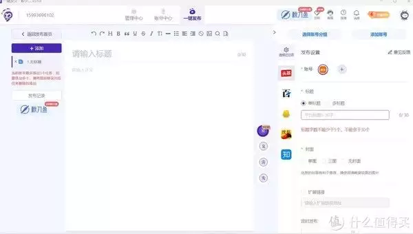 在正式发布的网页,他们能上载Word也能手动复制上载,引入后,他们所存取的帐号就在边上,能对帐号展开原则上的增设,比如带商品卡或是是加入多标题,都能简单的增设,正式发布后他们在正式发布记录之中查阅正式发布的状态和正式发布的文本,假如审核不通过,也是能展开修改的。