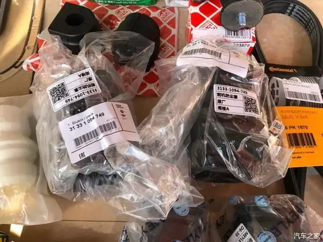 更换老化的底盘橡胶件也是此次养护的重中之重。因此我买了一些变速箱机脚、防倾杆衬套这样的会对整车共振、抖动有明显改善的橡胶件。奥迪原厂的橡胶件供应商是Febi费比,因此买配件直接买费比的就得了。