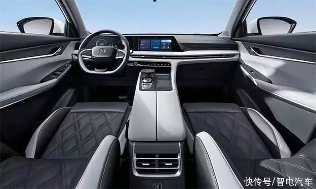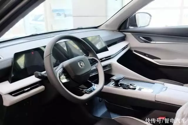 车内部分提供流沙白、神秘红、冰晶蓝白(选装)三种内饰颜色可选,车主可以根据自己的喜好选择不同的内饰颜色并且使用大面积软质包裹提升质感,配合一体式多功能方向盘、游艇式电子换挡手柄、双12.3英寸液晶大屏、巨幕全景天窗等设计打造出轻奢科技风。