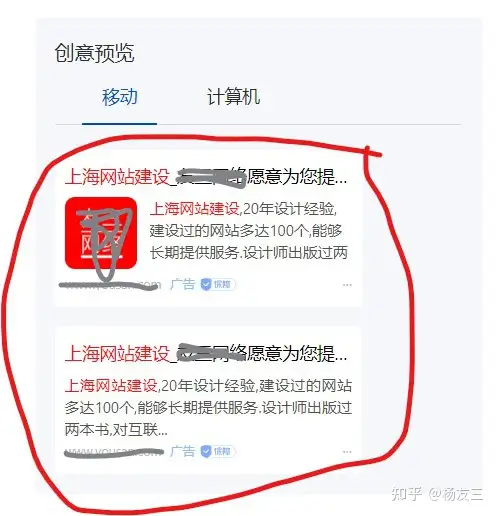图片审查通过后,在当前网页右侧能看到“创意结构设计预览”,也是广告在电脑和手机上分别呈现的样子:
