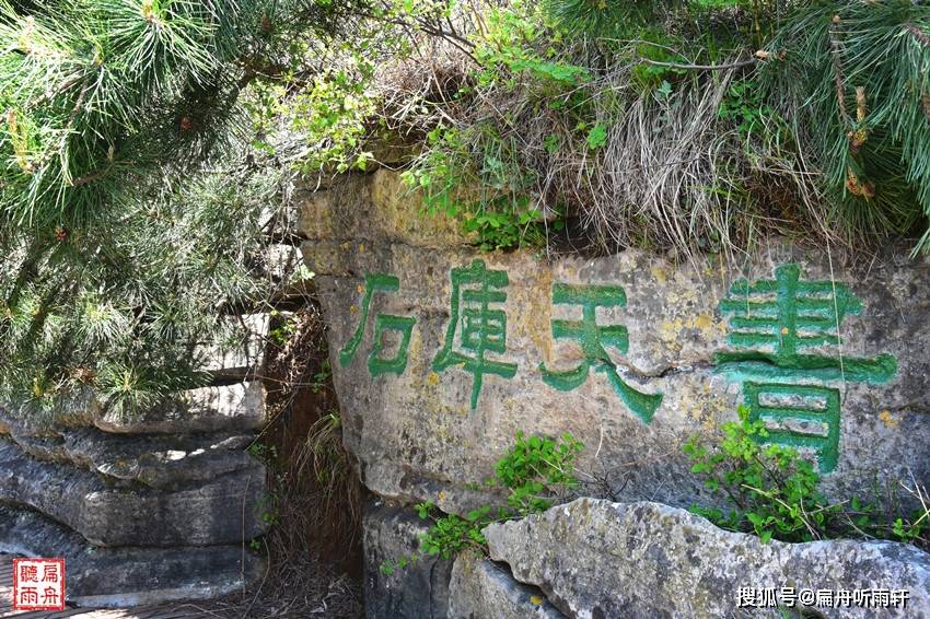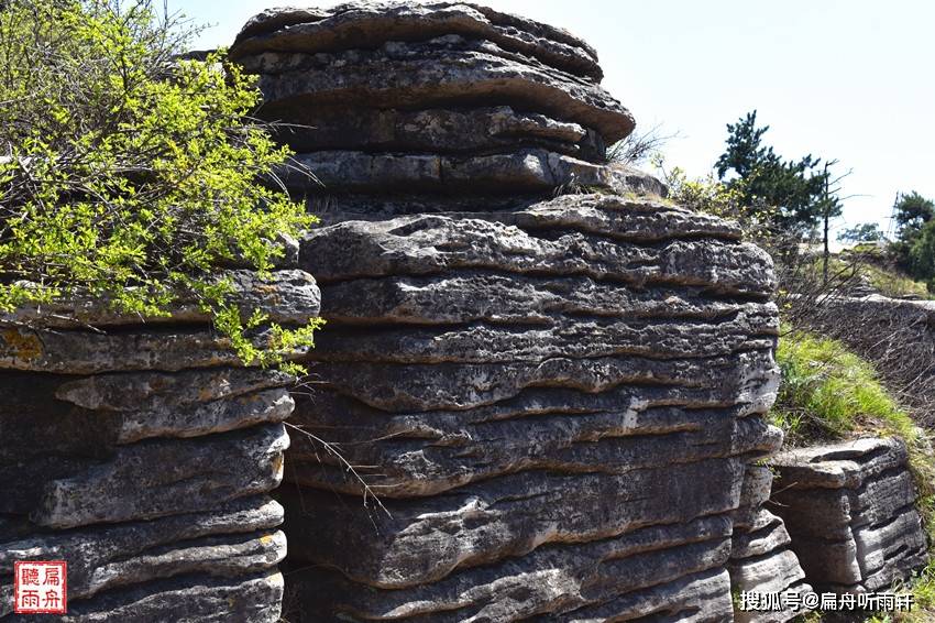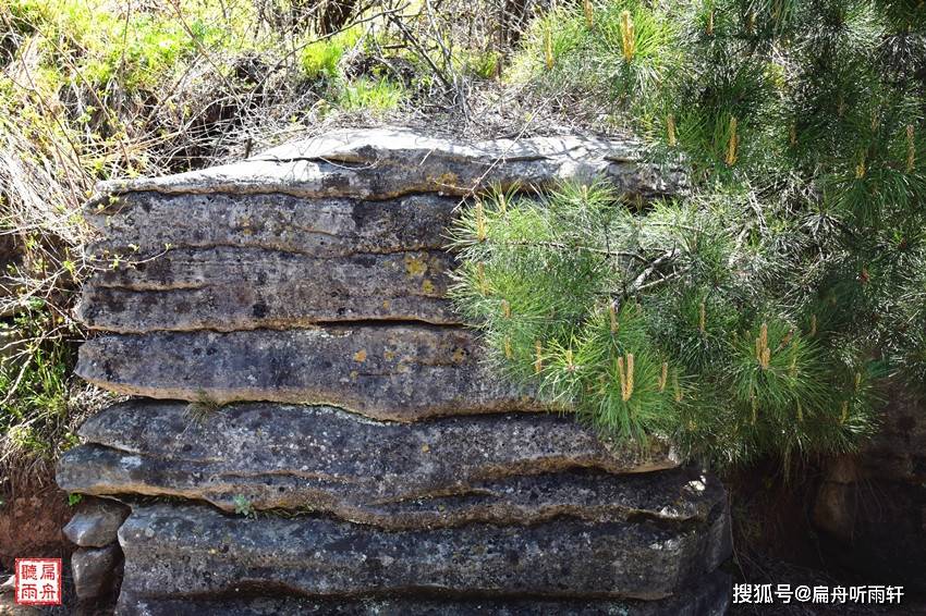 沿云上咖啡店下面的步道向前,很快,就看见了一部部象形的石库金刚经和天授兵书。一层层石块摞起来,就像书本一样。其实,都是汉武帝岭特有的地质现象——千层岩。