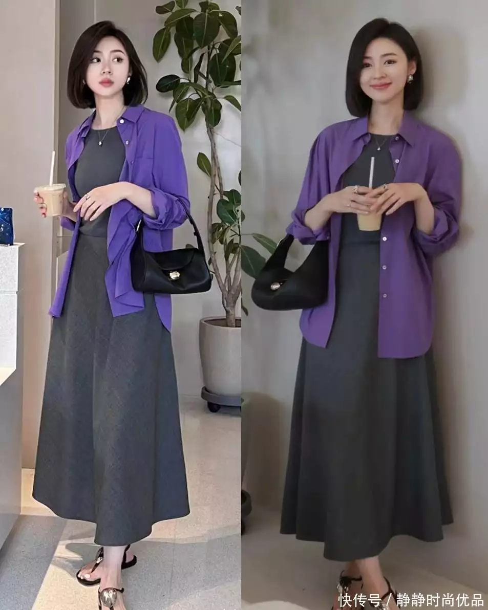 紫色是不挑年纪、人人皆可用的配色,而它与衬衫的紧密结合,也能塑造出较为清纯典雅的艺术风格。紫色裙装给人这样的觉得,鞋底亮片的覆盖,更营造出了十分潇洒的觉得,看起来剔透摇曳,很有雅典娜范。
