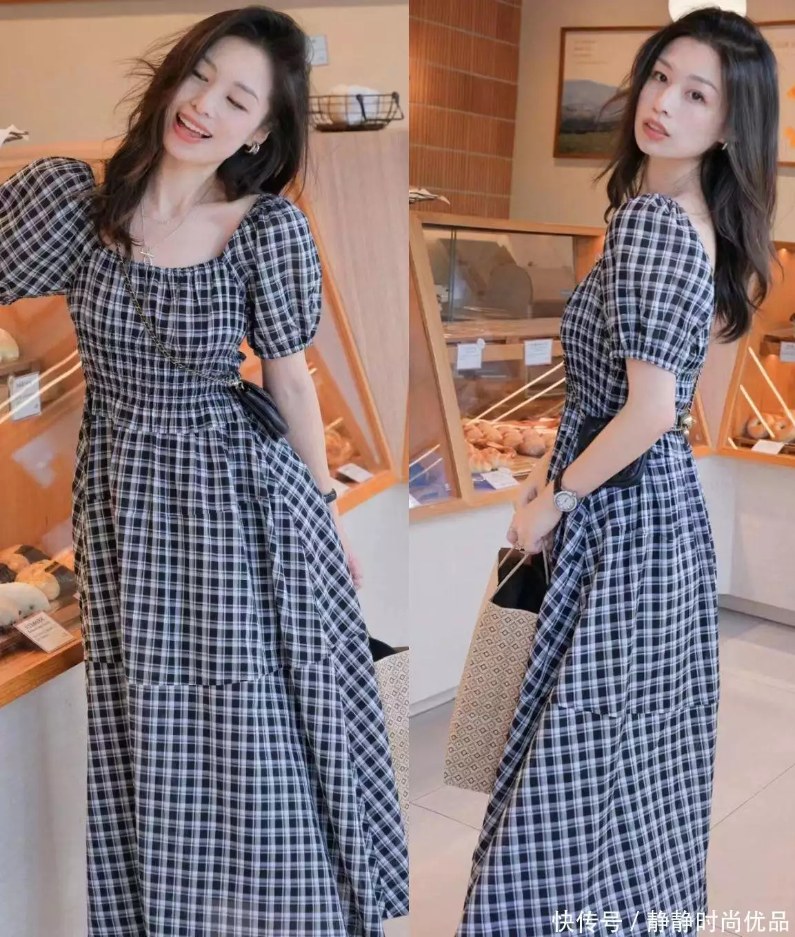 三、自带收腰的裙装衬衫一向是润色身材很出色的服装,而在此基础上,再紧密结合收腰设计不然,就能更好地优化身材线条,令男性透窈窕动人的姿态黑白格子设计的裙装,就有着收拢腰部布料的设计,而将轮廓收窄以后,不仅显得身材更苗条,同时也能平衡泡泡袖带来的体量感,避免透笨重感。