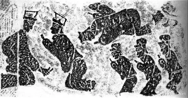 山东嘉祥洪家庙东汉孔子见老子画像砖拓片然而,汉武帝在不自觉地利用儒学的过程中,是否也不自觉地对其产生了拜服和崇仰之心,以及盛行于世的鬼神小术是否渗入他的儒学思想之中,此当为深入考辨汉武帝心路历程的应有之义,亦是贯穿西晋次著作始终的难题所系,及其不乏胜意之所在。