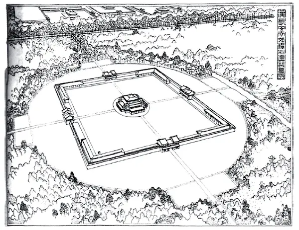 汉长安南郊礼制建筑复原图西晋次在《汉武帝》中提到,由汉武帝确立的南北郊祀制和明堂制,在东汉时期得以延续和完善,成为东汉礼教国家建设的重要基础与前提概言之,汉武帝以儒学成功、因儒学上台、以儒学治天下,甚至希企复周,再现古典黄金时代,复刻周公制礼作乐、致治太平的一系列作为和生平轨迹,都可以视作汉武帝以“圣”自许以及作为儒家思想平庸教徒的思想外显和历史表征。