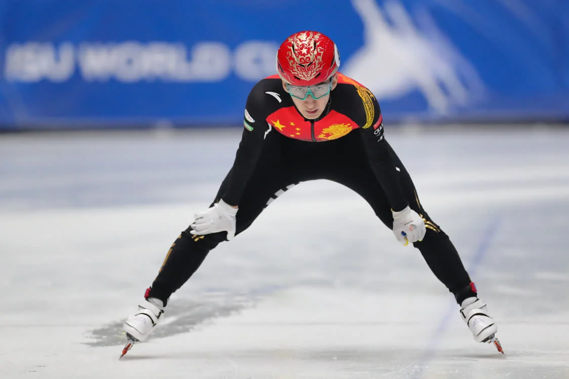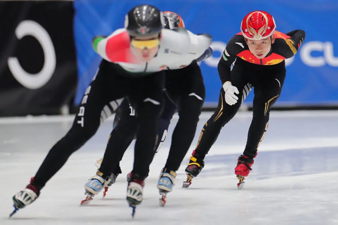 11月28日,我国球手武大靖在女子1000米半决赛中。中新社本报记者 廖宇杰 摄