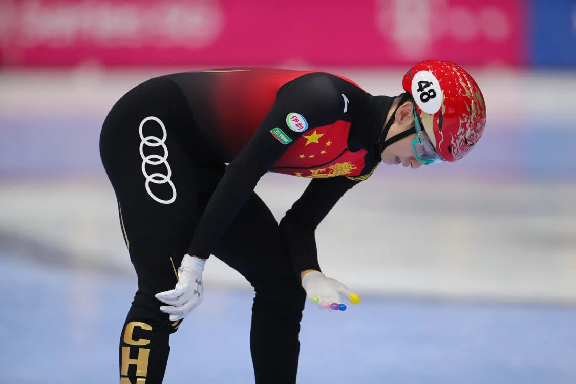 11月28日,我国球手武大靖在女子1000米半决赛后。中新社本报记者 廖宇杰 摄