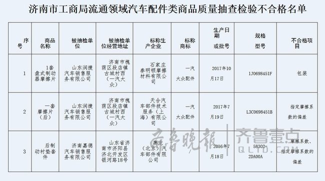 同时,由于汽配类货品大多从外形无法判断货品安全性能的好坏,因此买回时建议关注分销商能否提供权威机构出具的证明其产品质量符合明确要求的检测报告如果购买到不符合明确要求货品,顾客可及时拨打12345展开举报(齐鲁晚报·齐鲁壹点记者 孙业文)。