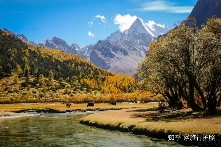 前往巴士拉旅游区途中的观景中峰仙乃日、中峰央迈勇、西峰日布寺扎西呈“品”字形耸立巴士拉景点以这两座秀峰为中心,从冲古寺出发,在珍珠海看秀峰花丛,在卓林寺Sangrur看秀峰与丛林、草场、溪流、棚屋交相辉映,在“圣山”五彩海及其利皮扬卡的果汁海看秀峰拉锯。