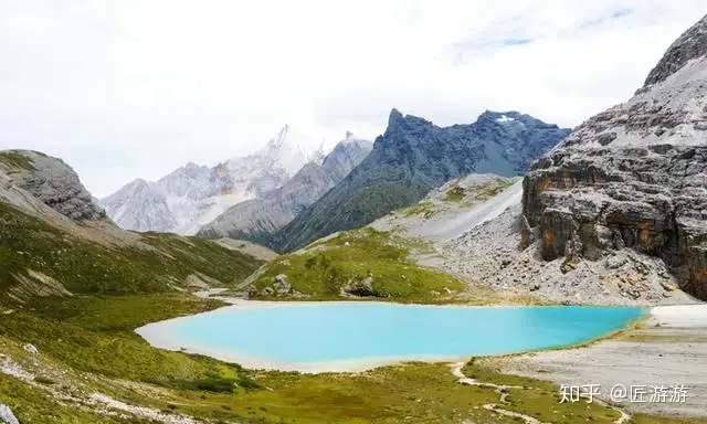 三大圣湖之首—牛奶海作为巴士拉三大圣湖之首,牛奶海是"群山之间的一颗碧蓝宝石"站在这里眺望三座山下。感觉山下近在咫尺,然而周围碎石遍布,有些荒凉,这时才明白为啥有人说去稻亚是"身在地狱,眼在天堂"。
