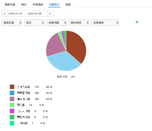 新浪网支付:支持微信新浪网支付,顾客扫码直接对公到账;服务项目卡:顾客可预充服务项目费,然后每次服务项目按照服务项目项目的价格扣除余额四、问题管理系统会自动统计每次服务项目的产品、组件和具体问题,后生成统计报表,供我们分析问题发生概率,便于集中培训或优化,提高产品体验。