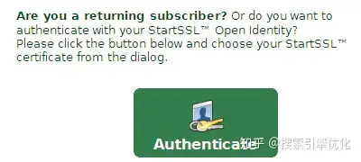 以后登录startssl要凭浏览器上前面加装的合格证书登录丢失合格证书后只能重新注册登记以后要登录,点选Authenticate凭合格证书登录: