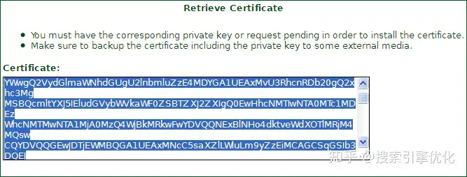 Tool Box - Retrieve Certificate,优先选择提出申请合格证书的域名,将框中的内容保存为.crt文件。比如ssl.crt。那个就是合格证书文件啦。