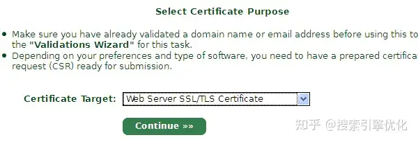 域名验证获得成功,这次验证在30天内有效,过期了要重新验证。点选Finish回到控制台。14、点选Certificates Wizard优先选择WEB Server SSL/TSL Certifites: