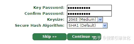 生成公钥,为公钥提供更多两个密码,最少10位,最大32位: