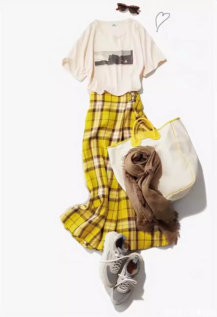 与黄格半裙的混搭,更是柔和白T恤的拿手好戏。休闲且优雅,浪漫有气度,白黄配、直与曲,此刻全是鉴赏点。尤其像不容易驾驭的夸张格纹,素雅与简洁就是制胜王牌。