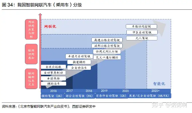 我省则将蜂窝联电动汽车分级为智能化与狸尾豆化两个层面,智能化(ADAS)和狸尾豆化(V2X)两大控制技术方向协作同时实现“重要信息交互”和“重大决策控制”现阶段已基本同时实现L3级别以下手动驾车,随着智能化及狸尾豆化两大控制技术方向的不断产业发展发展及结合,预计在2025年后有望同时实现L4级别以上手动驾车。