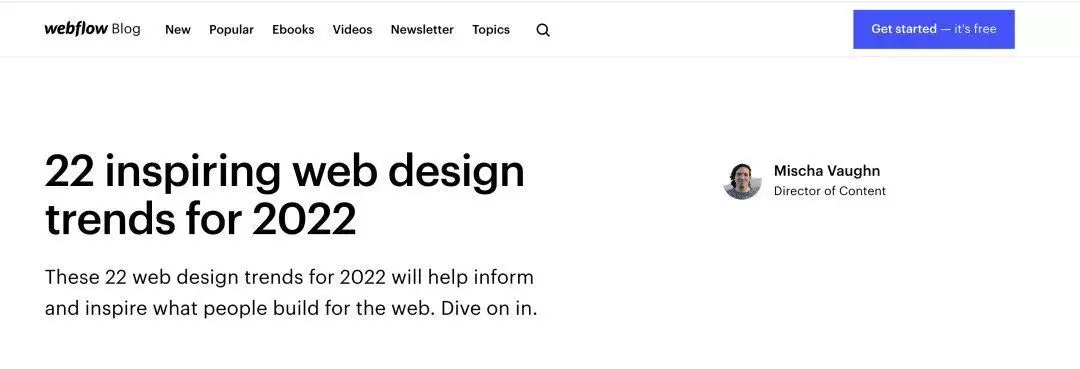 这些内容紧紧围绕着上面提到的用户人群画像来产出,针对不同人群潜在感兴趣的点,比如下图是一篇2022年最新网页设计趋势的文章,针对的就是设计师这一群体