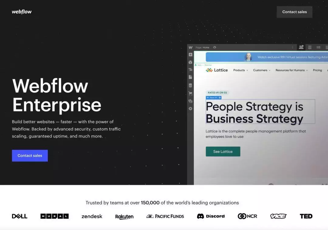 Scale(规模)而在支持方面,Webflow发现大公司核心的痛点在于培训团队上手使用Webflow这块,相对应的解决方案就是利用社区的力量就像上文中提到的,社区中已经有了一大批非常熟练使用Webflow的自由职业者。