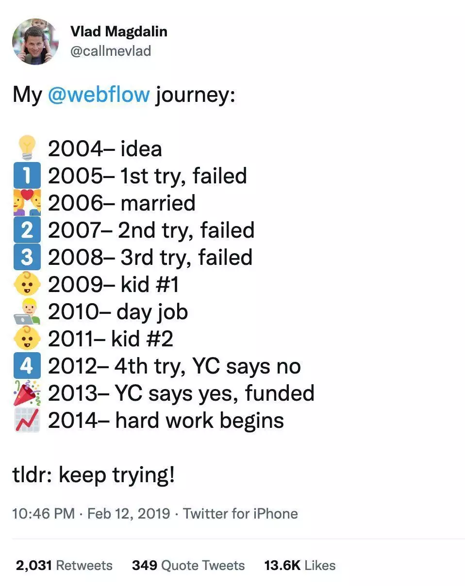 短短几小时,几位创始人的心情一下子上天,一下子又坠入谷底,不过所幸最终证明邮件是乌龙,他们成功拿到了YC的夏令营Offer,成为了YC S13的一员(更多有关这件事的详情可以看Webflow的官方博客:https://webflow.com/blog/the-story-of-how-webflow-and-y-combinator)。