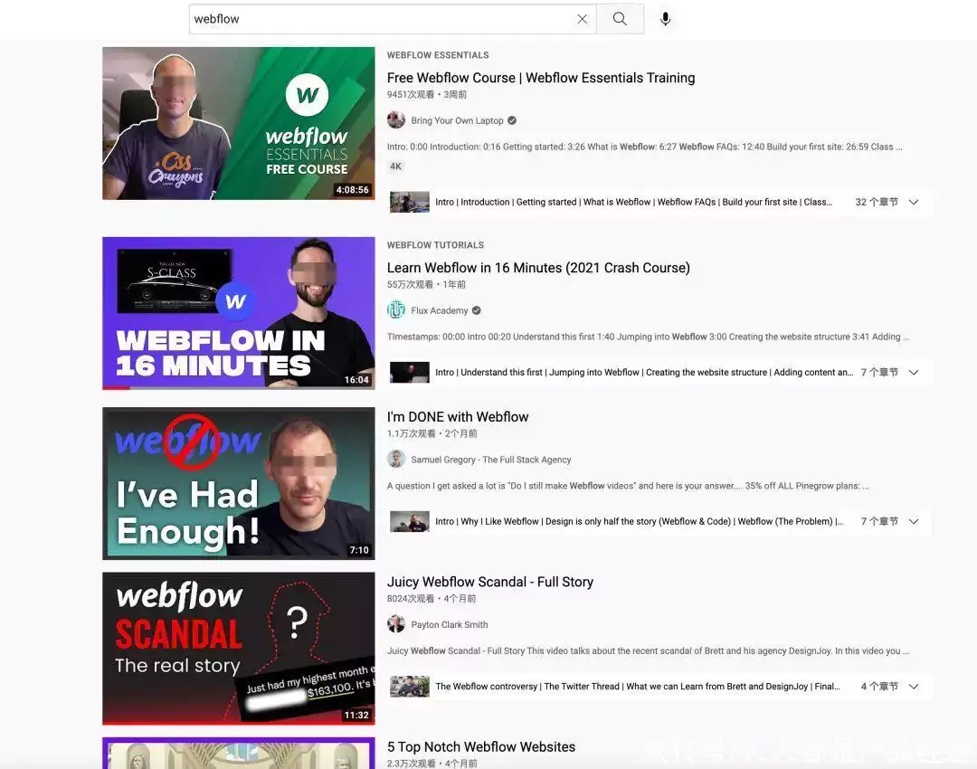 此外,跟之前文章中介绍的Notion一样,有大量用户自发的会在Youtube上产出Webflow相关的使用教学视频,并以此作为谋生的方式这在无形中又帮助Webflow进一步扩大了品牌影响力和传播度,并且这是完全。