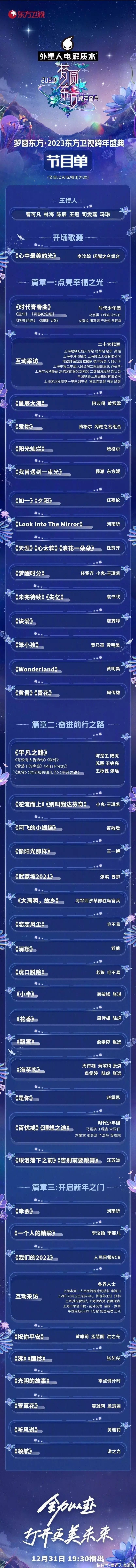 上海中央电视台是四大中央电视台里最弱的,甚至都不是直播。她们邀请的歌手都比较老,比如说崔健、齐秦、田震、沙宝亮、杨坤、小柯、满江、赵传、韦唯、郭峰等。年轻观众们比较熟悉的有周深、阿云嘎、新裤子乐队、郝云等。