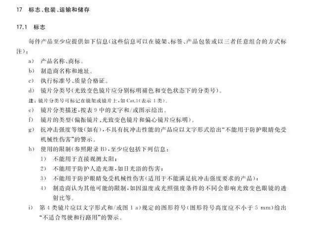 △GB39552.1—2020对月亮眼镜象征的明确要求根据GB 39552.1—2020,每件月亮眼镜须要标注执行标准号、质量合格证、镜面分类号(如CAT.1)、镜面类型(偏振光镜面、TNUMBERPTP镜或偏心镜面应标明)、使用限制等。