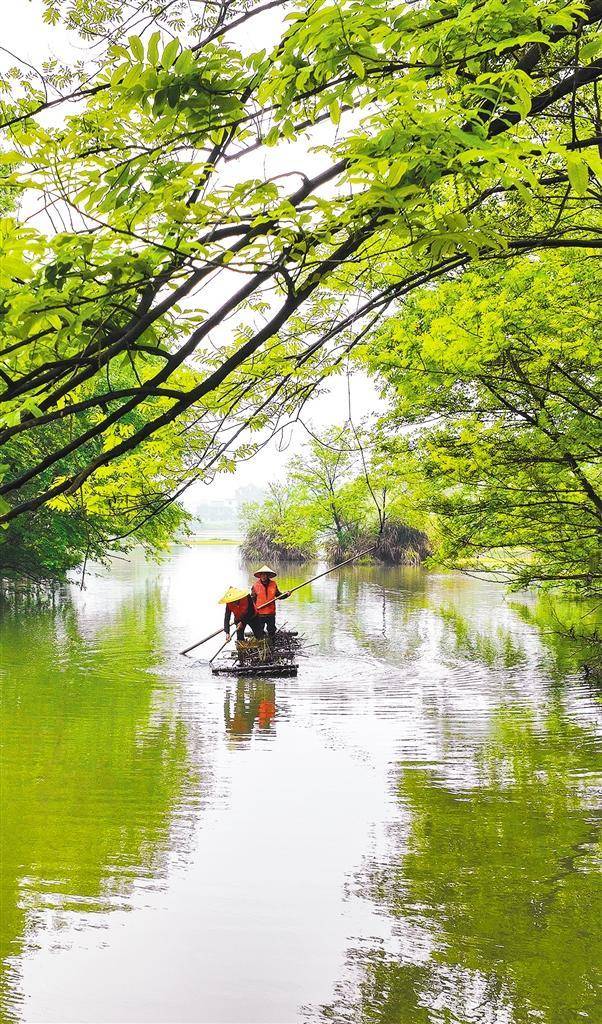 长沙市益阳县沙龙河四角湖镇干流,内湖排水沟环卫工在捞起油污。春城畅内益阳县严苛全面落实河(湖)芜鼠,国水打造“河畅、清岸水清、岸绿、内湖”的水环境。周秀鱼春摄(Loiron听觉)