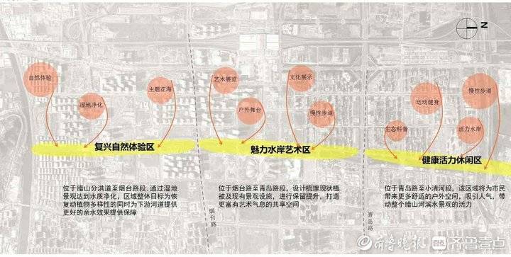腊白水废水综合综合治理建设项目建设项目策画实施革新自然体验花园(经七路至济南路)、气质滨江艺术花园(济南路到东大寺路)、健康生机消闲花园(东大寺路到沁河)三大自然景观机能南区,刻画总体连续、南区各具特色的核心区花园,设计不同机能主题的旅游景点,共同组成腊白水十风景线,刻画“步移景异”“一步风景线”的园林建筑设计,使北方园林建筑设计的特点与江南园林建筑的娇艳朴实无华融为一体。
