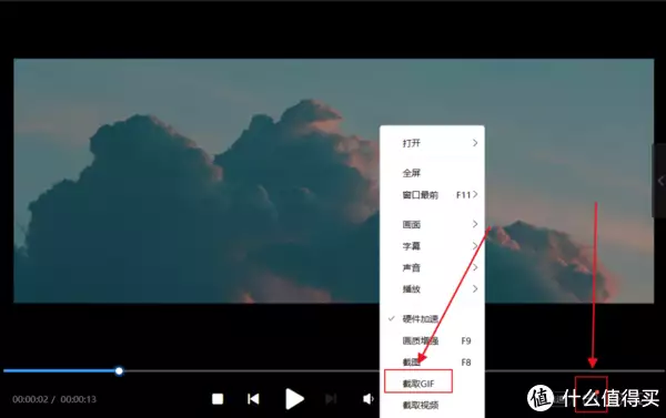 视频转GIF我一般采用的是迅雷影音。把视频用迅雷影音打开,间接右键或者点选右下角的工具箱图标,选择截取GIF即可。