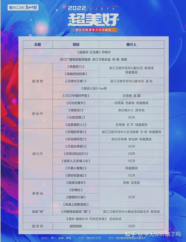 总得来看,江苏湖南卫视2022的娱乐节目单还是比较丰富,有新娱乐节目,也有老厂牌,个人还是更看好几档音综,你有期待的吗?