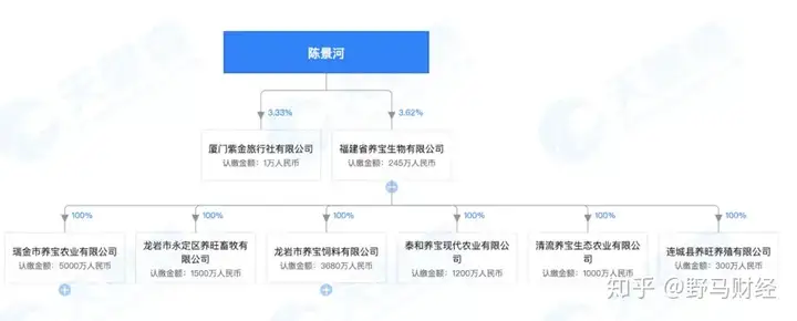 GW2查表明,陈景河入股两家子公司,分别是福州平西代理商有限子公司和福州市养宝生物有限子公司,前者旗下控股6家与农业和农牧相关的子公司,累计所夺金额过亿