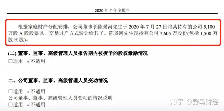 不过,就在这次婚宴前2个月,陈景河将自己一半股权转让给了儿子。ST墨龙2020年半财务报表表明,7月27日,因家庭财产分配安排,陈景河将其持有的5100万股A股股票(价值3.1亿)转让给儿子。