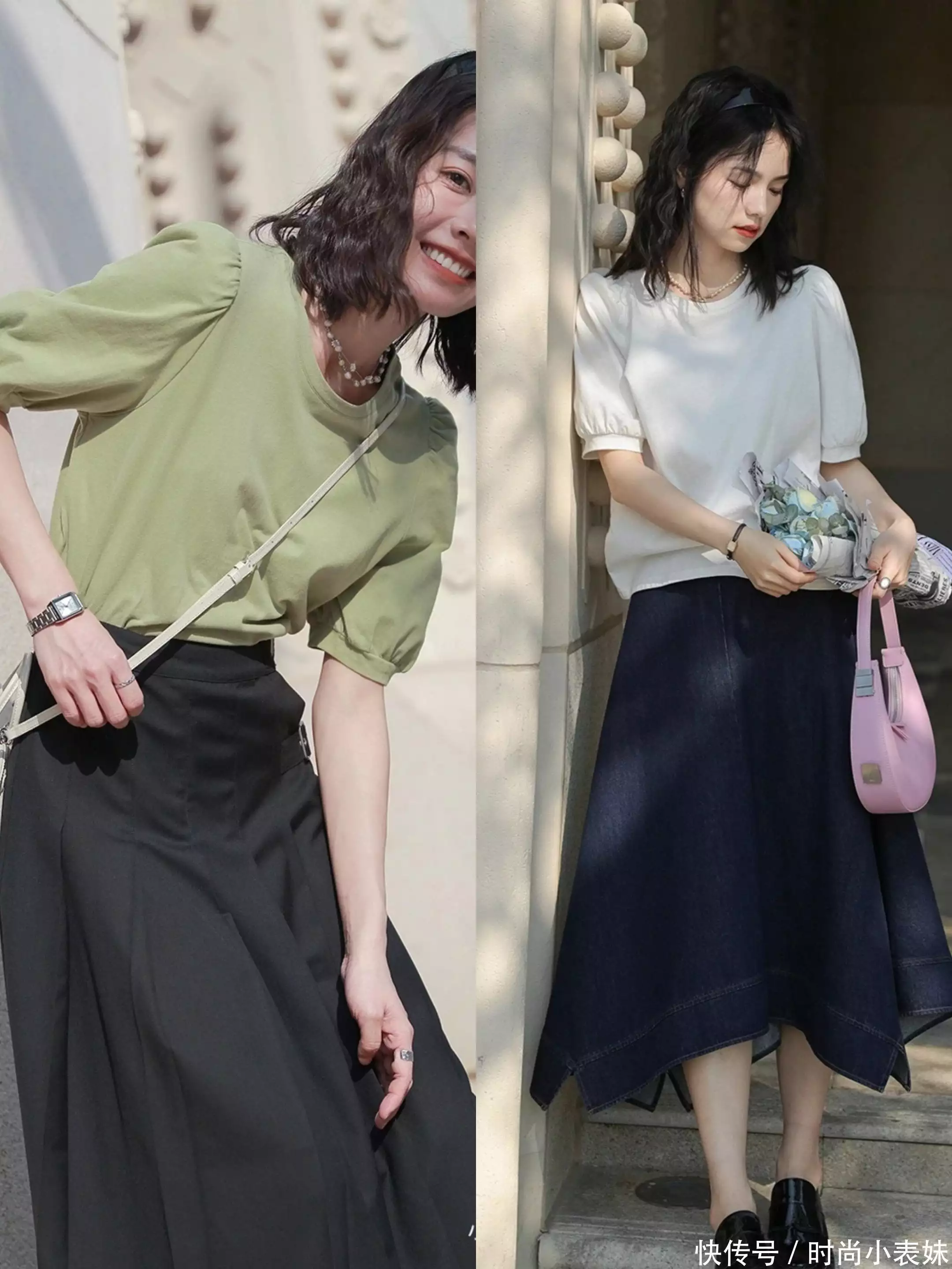 陀螺袖T恤减龄效用是非常明显的,而且配饰上半身极具妩媚,我们能用它搭配半身裙也能用它搭配高腰拖地阔腿裤风尚表现力强的姊妹能自行搭配,风尚表现力差的姊妹除这两类下装外还能直接优先选择套装,我们千万不要小瞧了套装,有陀螺袖存在的套装穿上半身效用是无人能及的,不会雷同也不会浮夸,很美很乖巧。