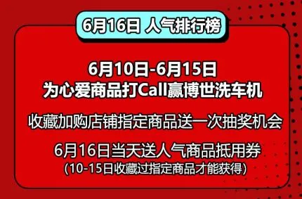 博世的好货那么多,到底哪些是今年车主心目中的爆款,尖货呢?这次我们将主动权交给各位老司机们,快来为你心目中NO.1的宝贝打CALL吧!好货排名将在6.16进行公布,参与评选的车主还将获得额外的人气商品抵用券