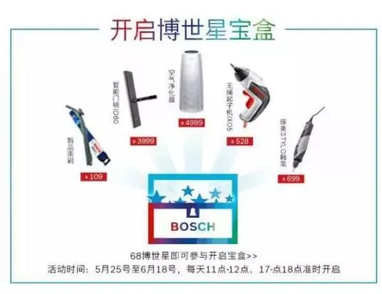 如果你嫌“瓜分”不过瘾?我们还准备了博世星宝盒等你来打开!活动期间每天11-12点、17-18点,只需68博世星即可参与,星宝盒里可藏着多款博世明星单品以及大热新品!