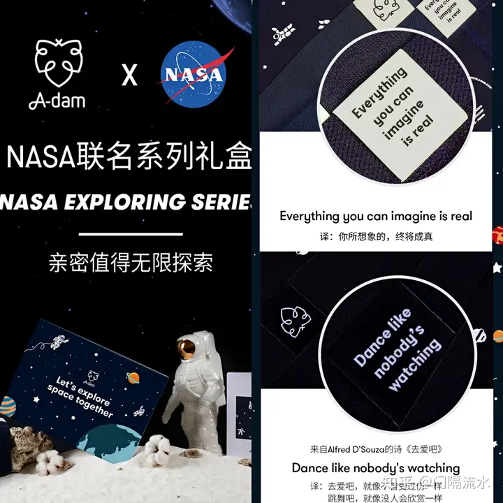 一般内裤只是两三片拼接,较为简单,adam的裁片多达八片,做工更复杂这样做出来的符合人体工学,不易卡腿卷边,洗了也不怕变形就连最近星巴克的杯子也做宇航员系列,意味着星空、探索、孤独、自由……足以说明这个元素有多浪漫,内侧标签还有情话织锦,太戳我了!。