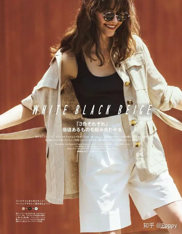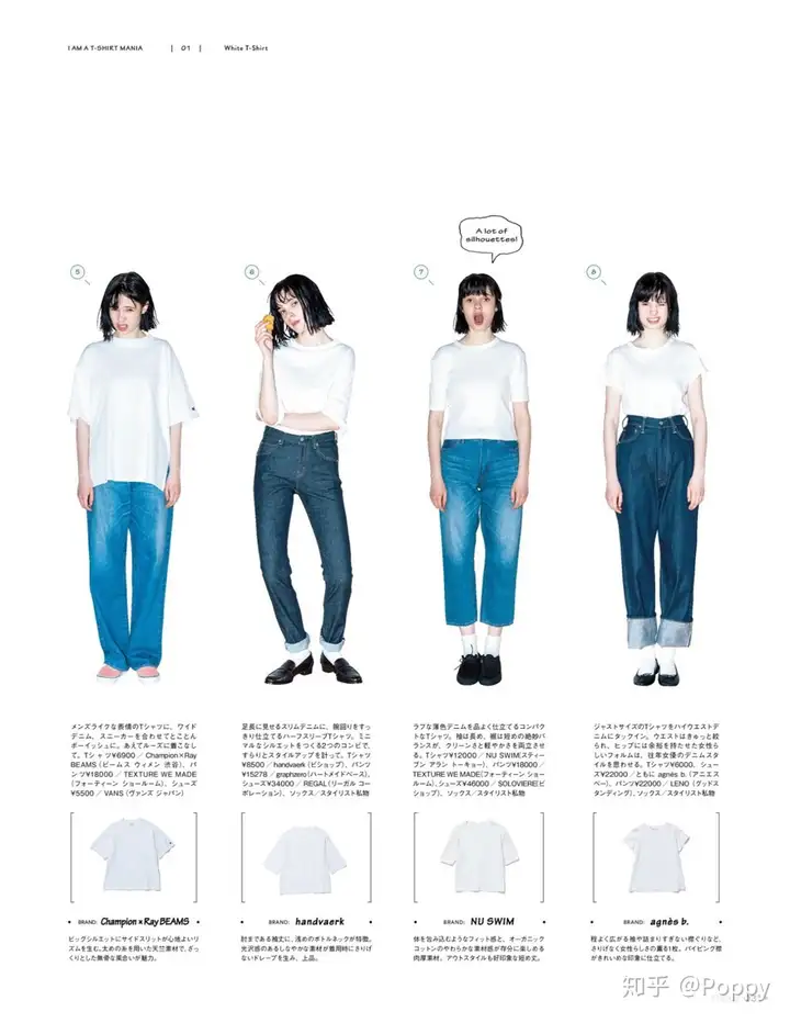 这份周刊里我也有一个非常讨厌的栏目,就是优化配搭栏目。在下图右下角的原始配搭图片里,白T配棕色长裤是日常的配搭优先选择。