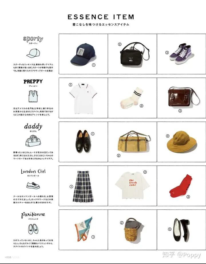 《CanCam》里的穿搭展现栏目也会按照场景分类,它会把不同场景下不同艺术风格的穿搭放在一起。