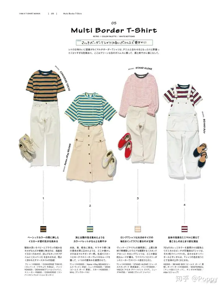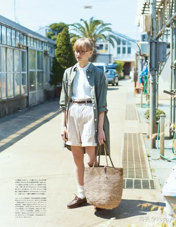 《CanCam》会按照着装场景所推荐配搭。比如说,去度假的时候,你就能像下面这样配搭,看出来舒适明媚。