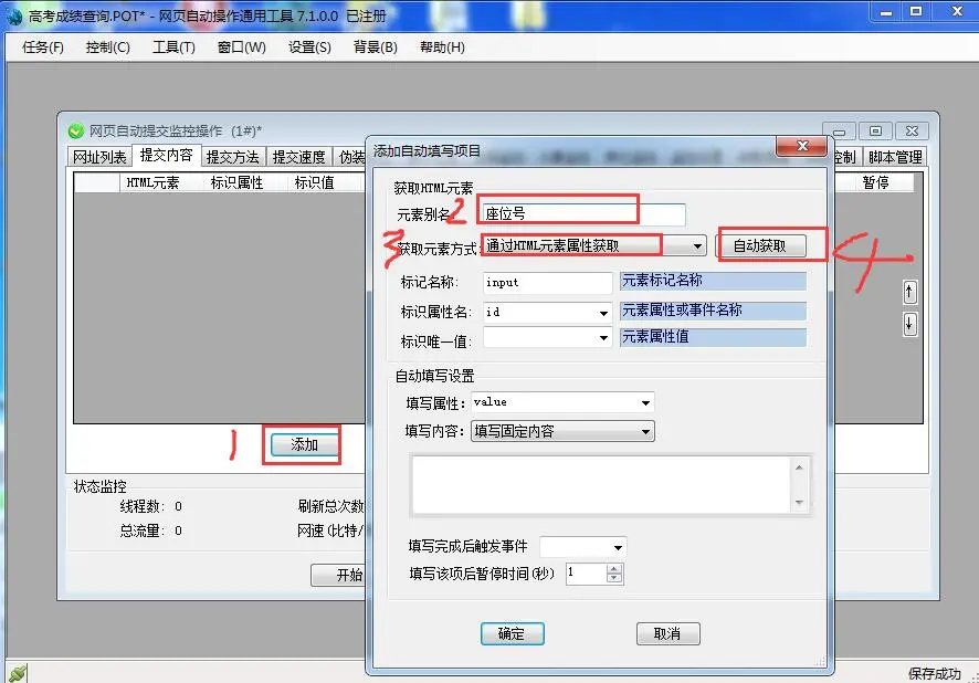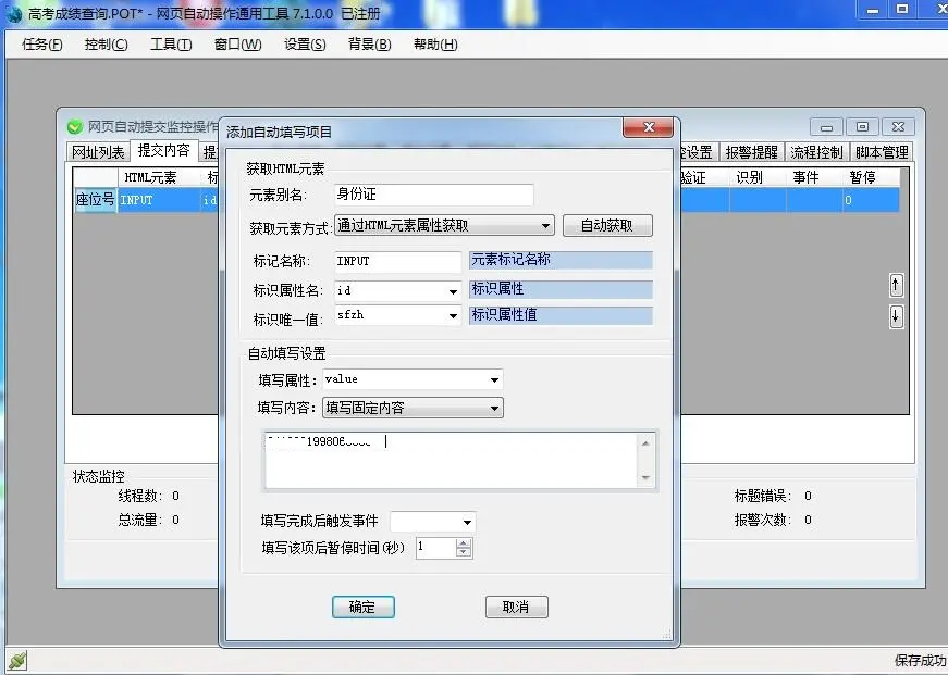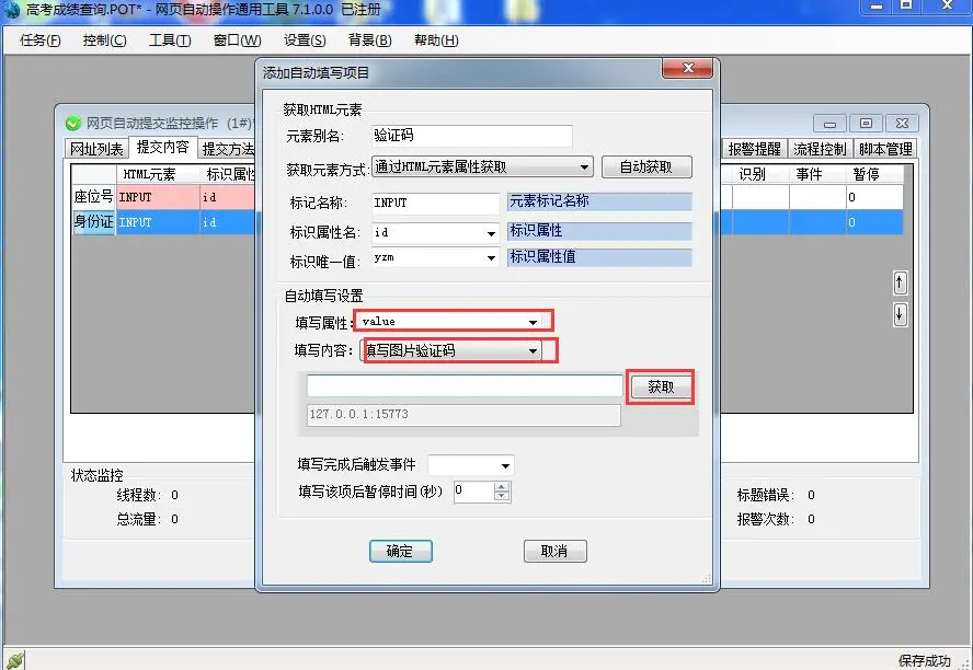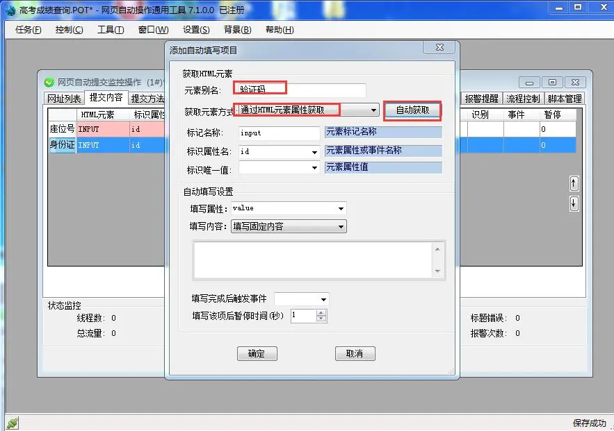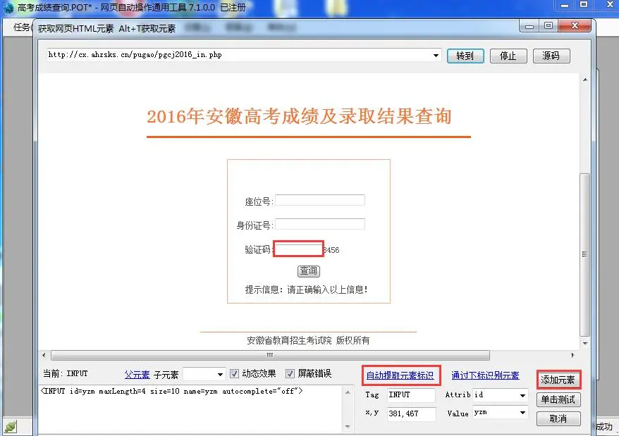 第六步:在“监视增设”工具栏,增设当登入成功查阅到学生战绩的时候,软件报警须要抽取的原素文本,以便于软件手动将这些文本留存到excel表单中。