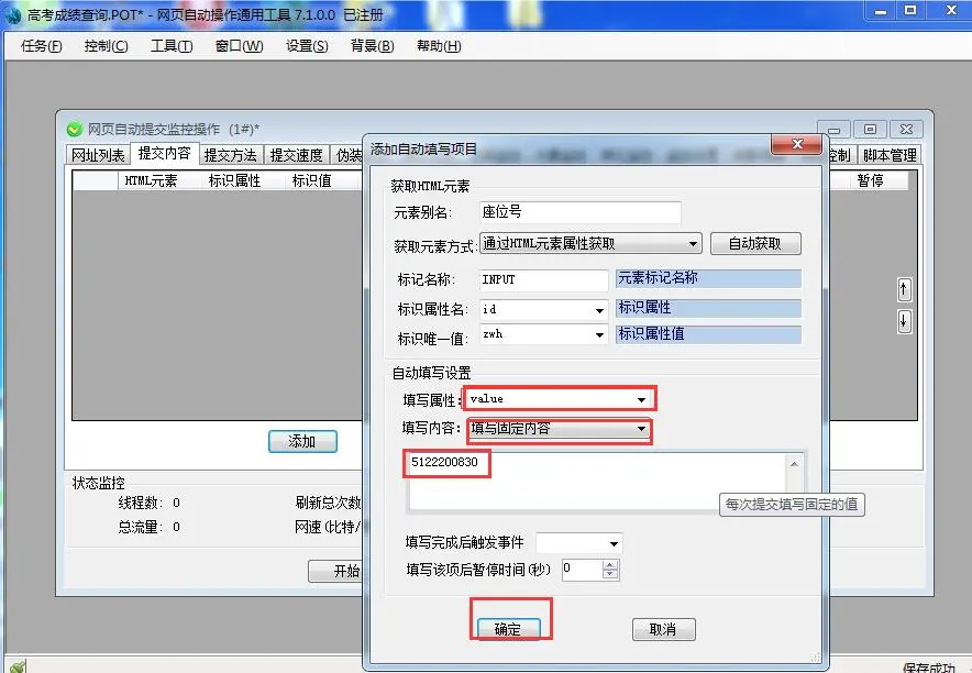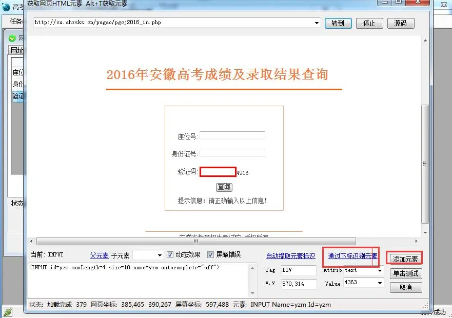 在关上的网页,他们透过分析源码知道,Attrib应该填“value”,value应该填“查阅”。点选“加进原素”。完成手动点选“查阅”的递交操作形式。