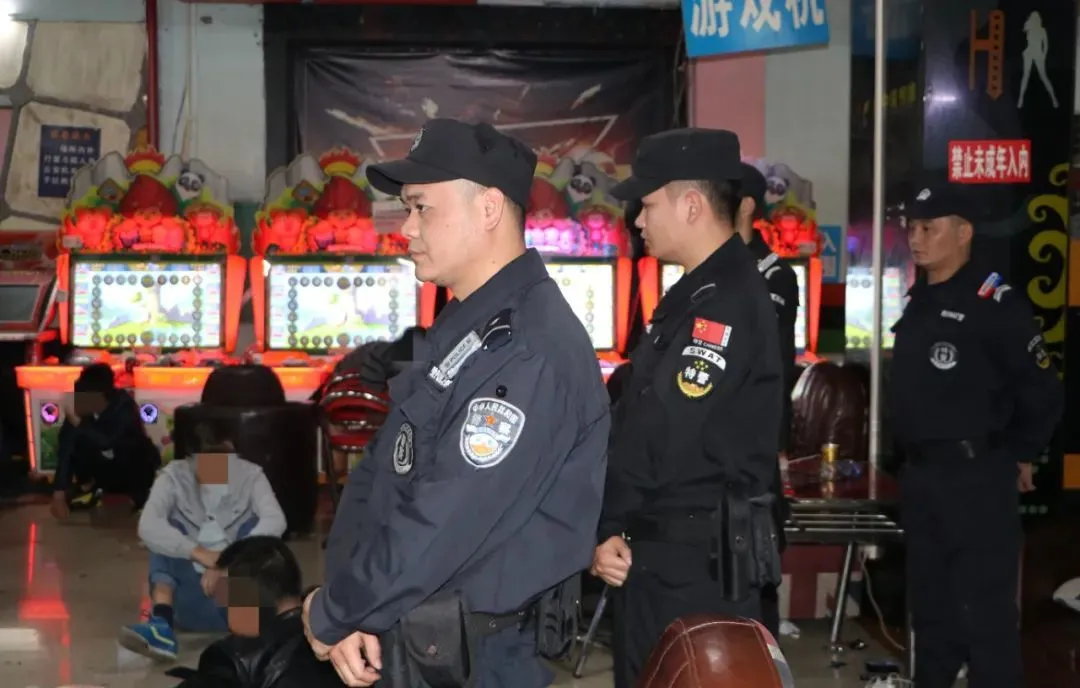 干杉检察院召开会议,部署有关组织工作当天晚上,兴安疑犯共出动警力130人,联手巡反扒大队迅速控制了2处大富翁城,现场将老板易某、孙某等42人抓获,现场收缴格斗游戏机30余台。