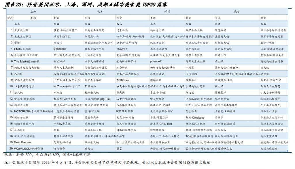 从头部商户分布来看,抖音与携程品牌重合度也较低。这主要就由于抖音直播模式更适合以茶饮为代表的轻餐饮、低客单模式。传统餐饮品类也主要就集中在火锅、烤肉、日料、自助等热销品类和大型头部品牌。