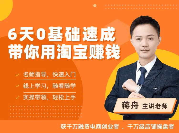 ▶ 资深老师全程辅导,不怕你学不会蒋舟老师纵横电商数十年,不仅是多家亿级企业战略运营顾问,还辅导过数百位月销一百万级商家和千万级账号操盘的前端店铺类目有服饰、箱包、食品等;操盘店GMV过亿有2家、GMV过千万有10家以上。