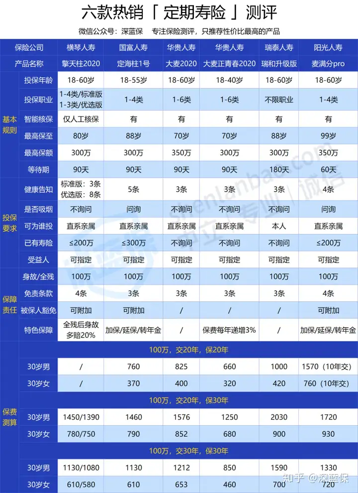 假如钟爱大公司:阳光 i 保麦满分 pro 不仅品牌大、分支机构多,价格在老牌公司里也不算贵假如是高危职业:瑞泰瑞和 不限职业最宽松,另外 大麦 2020、正青春 2020 也比较松,1 - 6 类职业都能买。