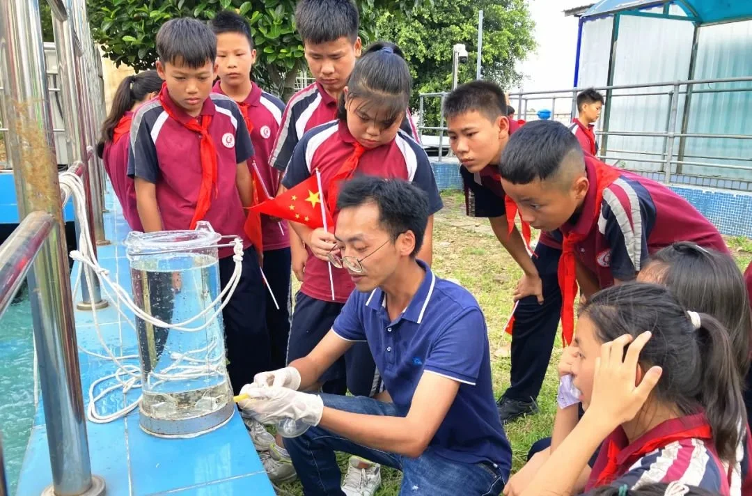 当日下午,六合生态自然环境支队组织村内小中学生前往废弃物处置厂参访学习中学生们在工程师和义工的带领下,依次参访了过滤器、结晶、细菌处置、深度处置、灭菌等设备业务流程,并观看了废弃物处置业务流程介绍音频,“废水钓得”的神秘过程给孩子们带来了不小的震撼人心。