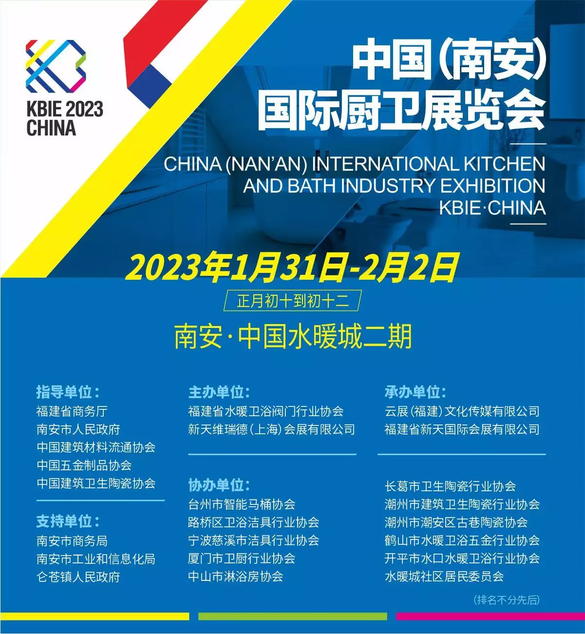 以“国际品牌·韦谢列·直播”为主题的漳州展览2023我国(南安县)国际性厨卫博览会(KBIE.CHINA)将于2023年1月31日-2月2日在我国房屋建筑城二期盛大举行! 11月7日,市住2023我国(南安县)国际性厨卫展开启典礼正式宣布在福州市房屋建筑厨卫管路金融专业委员会三楼会议室拉开帷幕!家聚焦行聚中